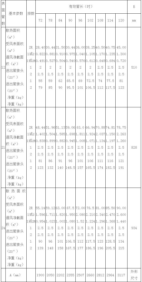 6、S型銅制空氣熱交換器的散熱管結(jié)構(gòu)參數(shù)表