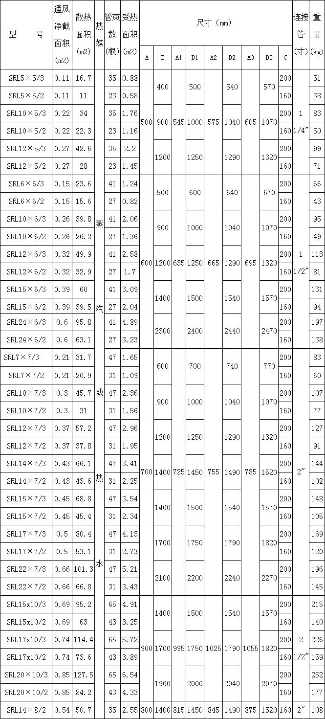 4、SRL空氣熱交換器(散熱器)的工作熱介質(zhì)可以為蒸汽或熱水,蒸汽(≤1.0MPa),熱水(≤160℃);